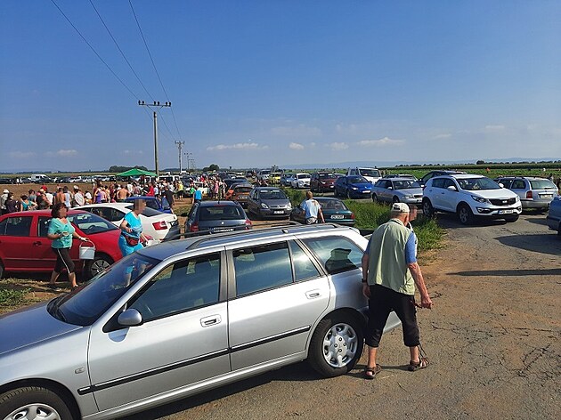 Policie uzavřela silnice mezi Ústínem a Vojnicemi u Těšetic, kterou zaplnili zájemci o samosběr zeleniny.