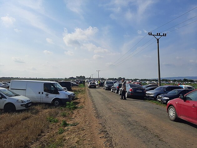 Policie uzavřela silnice mezi Ústínem a Vojnicemi u Těšetic, kterou zaplnili zájemci o samosběr zeleniny.