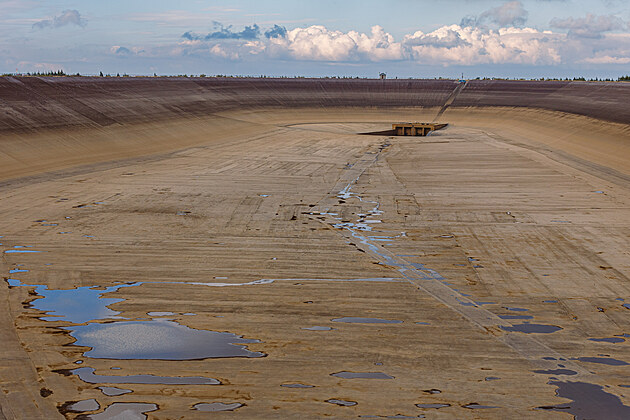 Horní nádrž elektrárny Dlouhé Stráně je bez vody, kterou technici vypustili, aby mohli nádrž opravit a modernizovat. (11. září 2024)