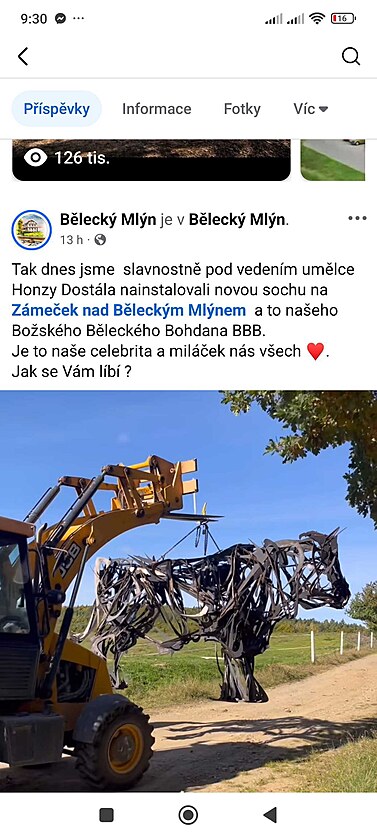 Mohutnou kovovou plastiku býka převezli do areálu Bělecký mlýn na Olomoucku. (13. října 2025)