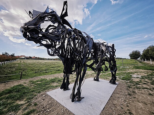 Socha býka od sochaře Jana Dostála. (13. října 2025)