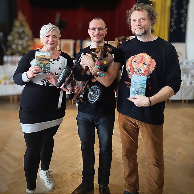 Spisovatel Jaroslav Irovský (uprostřed) s manželi Petrošovými z Jezevčíků v nouzi.