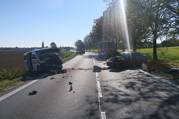 Srážka osobního vozu se sanitkou u Mohelnice (20. října 2025)