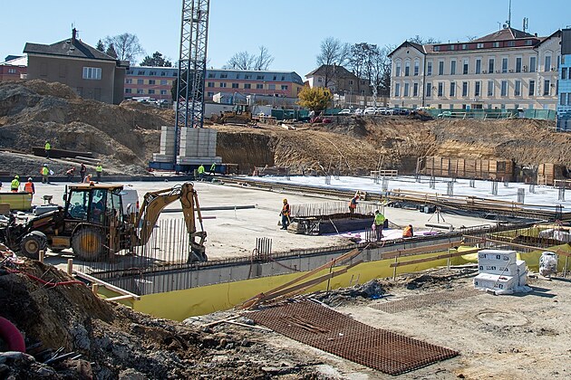 Stavba nového pavilonu B za 3,5 miliardy s urgentním příjmem ve Fakultní nemocnici Olomouc začala vloni. Hotovo má být v roce 2028.