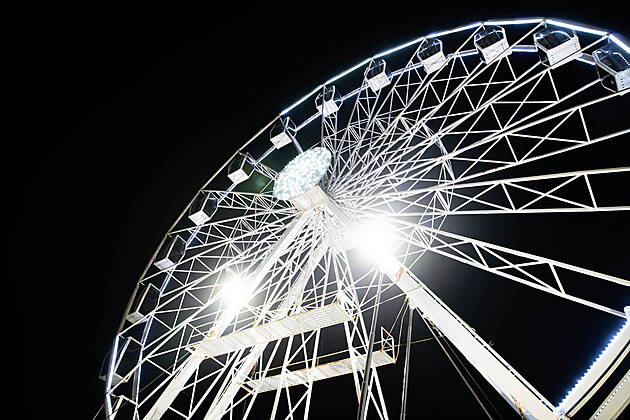 Ledová plocha vyrostla v Olomouci stejně jako v minulých letech v prostoru městského tržiště. Nedaleko láká k výhledům i ruské kolo. (4. listopad 2025)