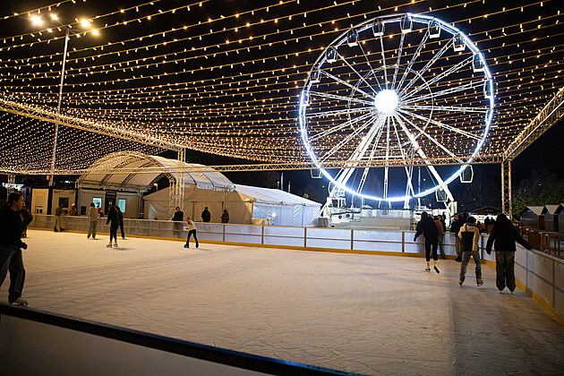 Ledová plocha vyrostla v Olomouci stejně jako v minulých letech v prostoru městského tržiště. Nedaleko láká k výhledům i ruské kolo. (4. listopad 2025)