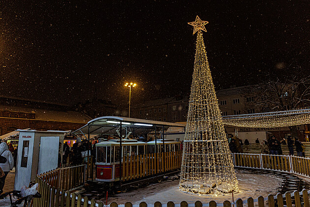 Mezi atrakce olomouckých vánočních trhů patří i minitramvaj.
