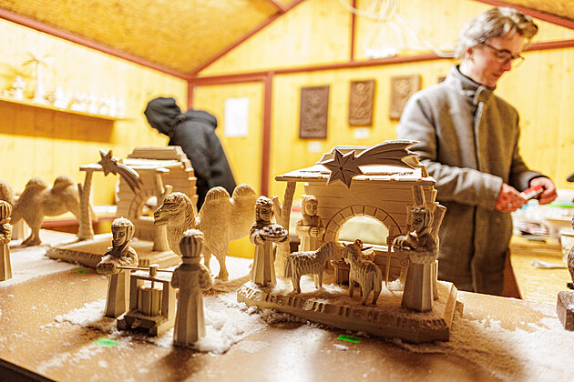 Olomoucké vánoční trhy i letos nabízejí stánky s rozličným zbožím, ale také jídlem a pitím.