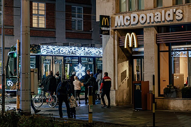 Svátečně vyzdobená tramvaj v Olomouci