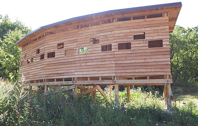 Ptačí park Malá Lipová na Přerovsku je nejvýznamnější hnízdiště vlh pestrých ve střední Moravě. Nachází se tam kolonie vlh, které si v pískových stěnách hloubí nory pro hnízdění. Na snímku jsou ptačí pozorovatelny.