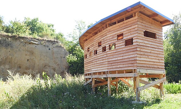 Ptačí park Malá Lipová na Přerovsku je nejvýznamnější hnízdiště vlh pestrých ve střední Moravě. Nachází se tam kolonie vlh, které si v pískových stěnách hloubí nory pro hnízdění. Na snímku jsou ptačí pozorovatelny.