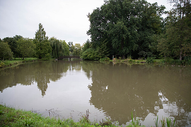 Vodníka, který nově hlídá rybník v parku v Uničově, vyřezal slovenský řezbář Michal Kopásek.