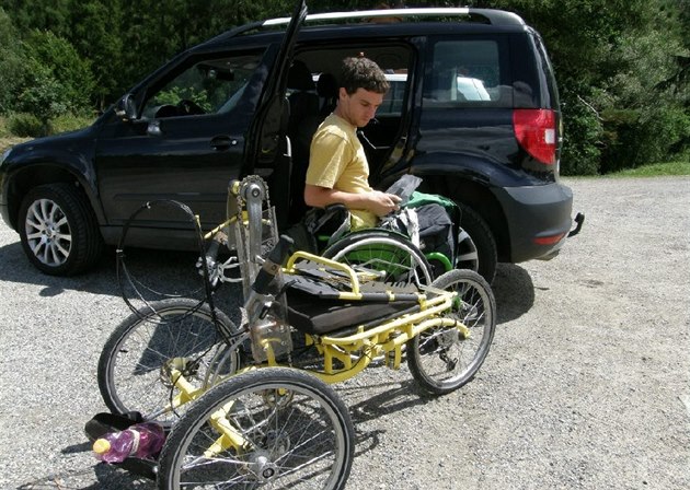 Jeho tříkolka se jmenuje Kozoroh. Je to starší kousek, který má do moderních handbiků daleko.