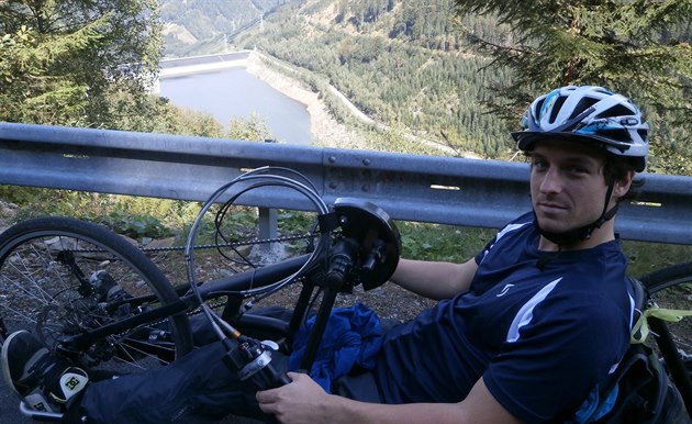 Jihočech žijící nyní v Praze vyjíždí nahoru v půl jedenácté. Doprovází ho přítelkyně Kamila jedoucí na koloběžce. První otočení řídítek napojených na řetěz a handbike se dává do pohybu. Metry přibývají jen pomalu. První metou je spodní nádrž přečerpávací vodní elektrárny Dlouhé stráně.