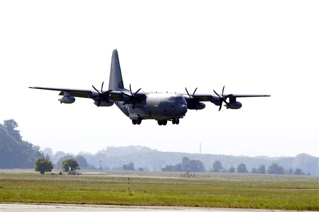Americký letoun pro speciální operace MC-130J Commando II. odvozený od legendárního stroje C-130 Hercules přistává v rámci cvičení Eagle 2015 na letišti v Přerově-Bochoři.