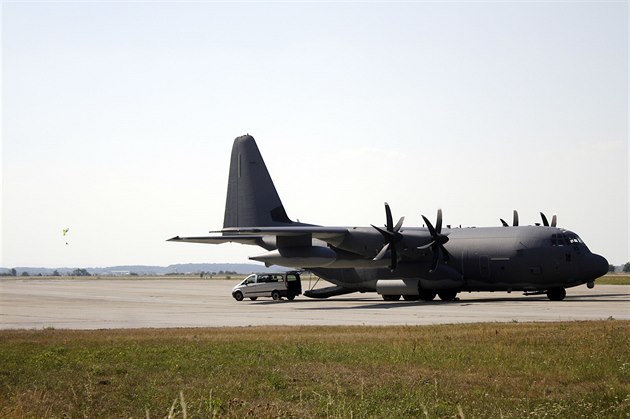 Americký letoun pro speciální operace MC-130J Commando II. odvozený od legendárního stroje C-130 Hercules přistál v rámci cvičení Eagle 2015 na letišti v Přerově-Bochoři.