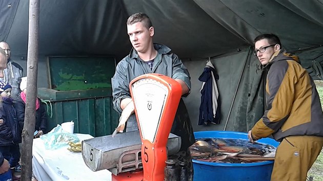 Výlov Hradeckého rybníka v Tovačově na Přerovsku