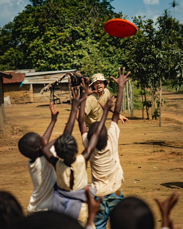 Momentka z natáčení dokumentu Kongo: Cena slona, za nímž stojí olomoucký scenárista a producent Lukáš Hodis. Jedním z hlavních protagonistů je známý český zpěvák Ben Cristovao (na snímku).