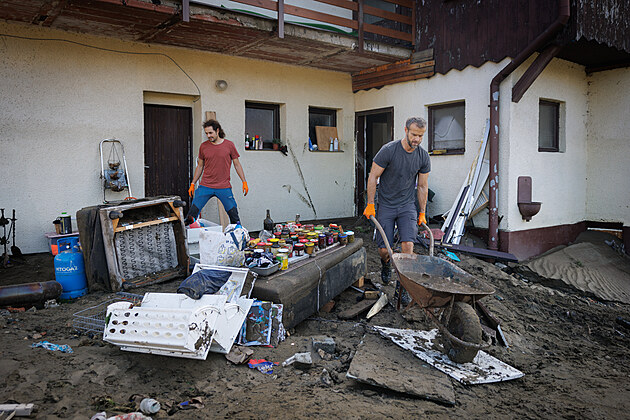 Obec Česká Ves a řeka Bělá po povodních (17. září 2024)