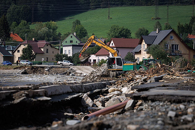 Obec Česká Ves a řeka Bělá po povodních (17. září 2024)