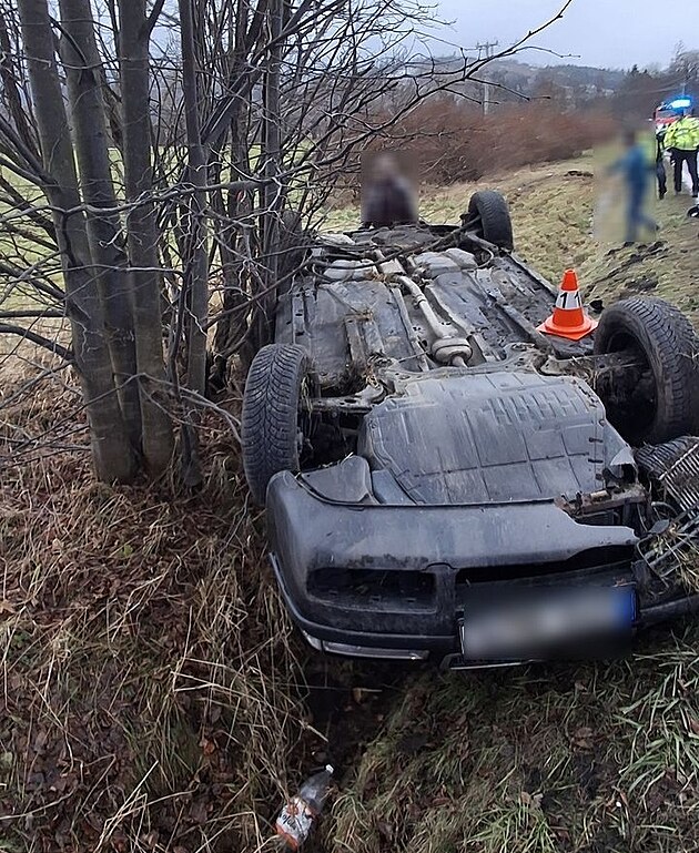 Osmnáctiletý mladík jel po mokré silnici příliš rychle, vůz v němž vezl dvě vrstevnice skončil na střeše.