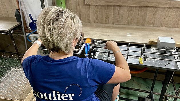 Jedna ze sklářek firmy Koulier tvaruje sklo nad plamenem. (25. září 2025)