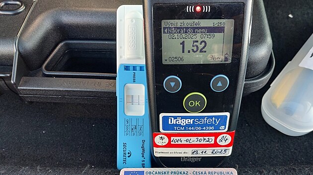 Výsledek dechové zkoušky u zadrženého agresora. (2. října 2025)