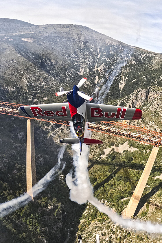 Česká akrobatická skupina Flying Bulls Aerobatics Team jako vůbec první na světě úspěšně absolvovala obrácený skupinový přemet kolem mostu Mala Rijeka v Černé Hoře.