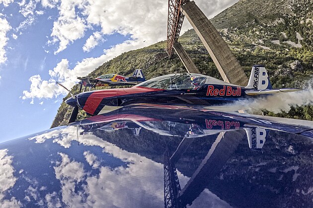 Česká akrobatická skupina Flying Bulls Aerobatics Team jako vůbec první na světě úspěšně absolvovala obrácený skupinový přemet kolem mostu Mala Rijeka v Černé Hoře.
