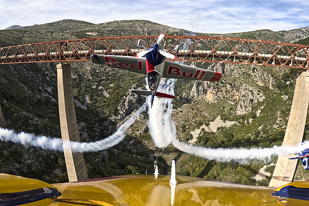 Česká akrobatická skupina Flying Bulls Aerobatics Team jako vůbec první na světě úspěšně absolvovala obrácený skupinový přemet kolem mostu Mala Rijeka v Černé Hoře.