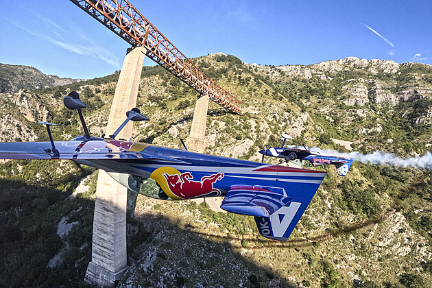 Česká akrobatická skupina Flying Bulls Aerobatics Team jako vůbec první na světě úspěšně absolvovala obrácený skupinový přemet kolem mostu Mala Rijeka v Černé Hoře.