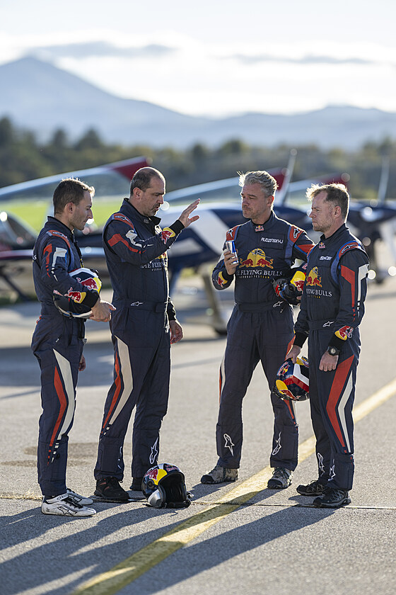 Piloti Flying Bulls Aerobatics Team zleva: Jan Tvrdík, Stanislav Čejka, Jan Rudzinskyj a Martin Špaček