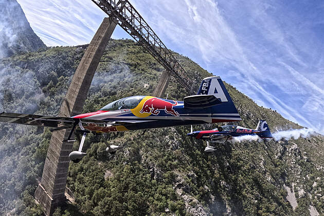 Česká akrobatická skupina Flying Bulls Aerobatics Team jako vůbec první na světě úspěšně absolvovala obrácený skupinový přemet kolem mostu Mala Rijeka v Černé Hoře.