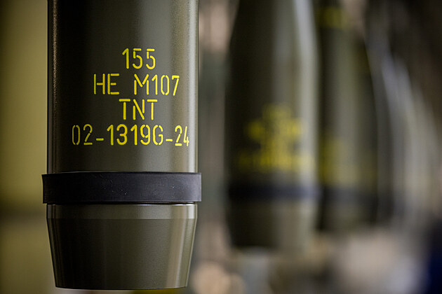 Žluté označení, takzvaná šablonace, která značí typ náboje, ráži, výrobní sérii a tak podobně.