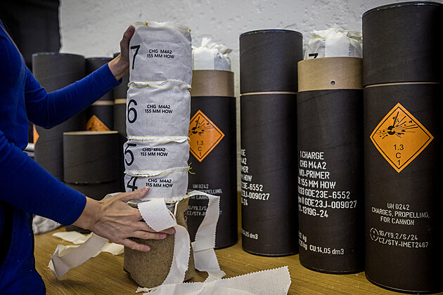 Pytle s bezdýmým prachem, které jsou přesně označené podle objemu náplně a poté dány do přepravních tubusů.