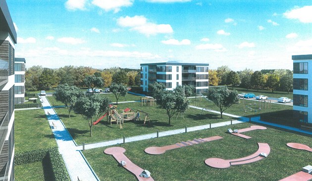 Nová Hůrka - mezi domy architekti mysleli i na minigolf nebo prolézačky a hřiště pro děti. Vše by měla obklopit zeleň a stromy.