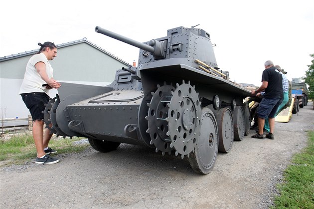 Přehlídky bojové techniky Cihelna se letos účastní i replika československého tanku LT-38, kterou si na okraji Olomouce postavil nadšenec Ivan Dudáš. (2016)