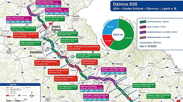 Dálnice D35 v Pardubickém kraji se skládá po částech – hotové úseky už slouží, další tři jsou ve výstavbě a dva poslední má v příštím roce začít stavět soukromý investor v režimu PPP. K úplnému propojení s Mohelnicí chybí ještě 60 kilometrů.