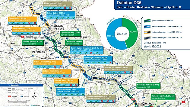 Stavební stroje na trasu důležité spojnice Čech a Moravy vyjedou přinejlepším v druhé polovině roku. Z budoucí dálnice D35 na území regionu má nejblíže k zahájení výstavby téměř dvanáct kilometrů dlouhý úsek Janov - Opatovec, jehož součástí je i budovaný železniční most. Na osamocenou část za Litomyšlí, která by se měla otevřít v roce 2026, běží výběrové řízení.