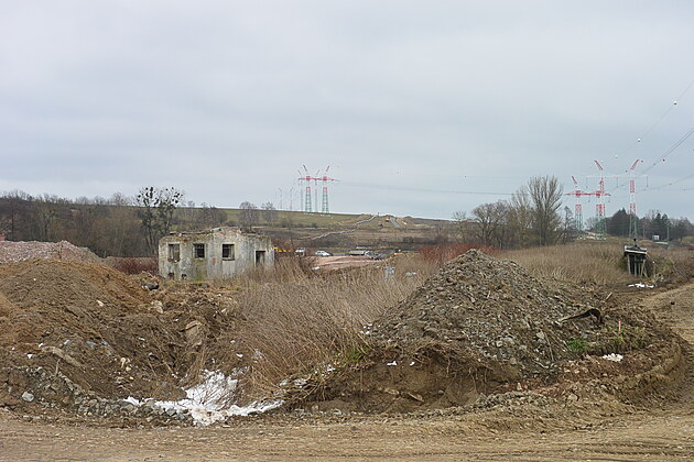 Náročné přeložení vysokonapěťové linky velmi vysokého napětí u Hrušové mají stavaři za sebou. Za dva roky by tudy měli řidiči jezdit po estakádě. (23. ledna 2025)