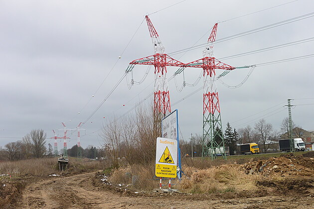 Náročné přeložení vysokonapěťové linky velmi vysokého napětí u Hrušové mají stavaři za sebou. Za dva roky by tudy měli řidiči jezdit po estakádě. (23. ledna 2025)