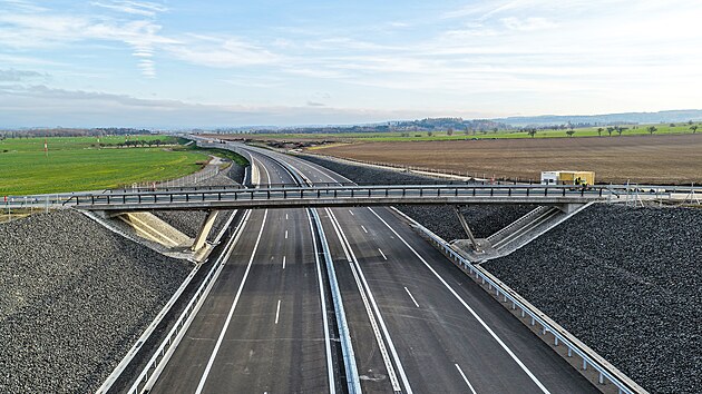 Šest kilometrů dlouhý dálniční obchvat značně uleví Vysokému Mýtu od tranzitní dopravy. Snímek byl pořízen měsíc před zprovozněním dálnice. (16. listopadu 2025)