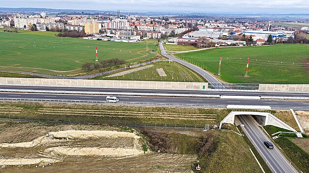 Šest kilometrů dlouhý dálniční obchvat značně uleví Vysokému Mýtu od tranzitní dopravy. Snímek byl pořízen měsíc před zprovozněním dálnice. (16. listopadu 2025)