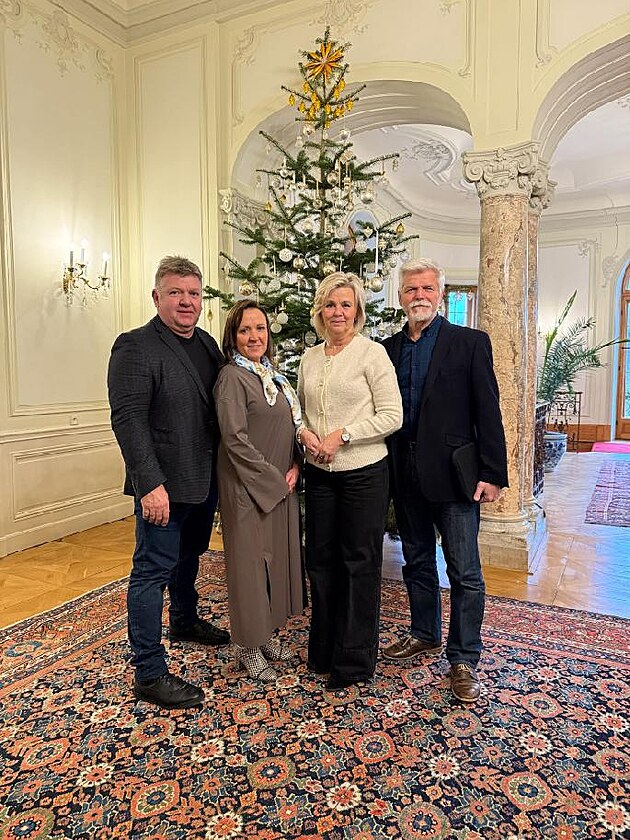 Manželé Šrámkovi s prezidentem Petrem Pavlem a první dámou Evou Pavlovou. (9. prosince 2025)