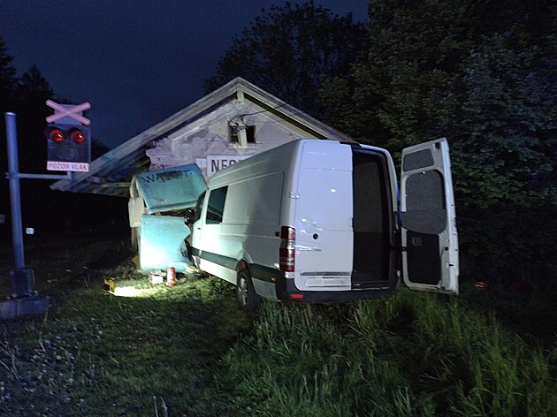 V obci Březinky - Nectava na Svitavsku narazila dodávka do drážního domku, zranilo se šest lidí včetně dětí. (12. května 2025)