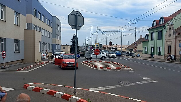 Nebýt řady rozumných řidičů, kteří auta z vedlejší silnice pustí na hlavní, v dopravní špičce se od nemocnice na Kyjevskou ulici nedostane nikdo.