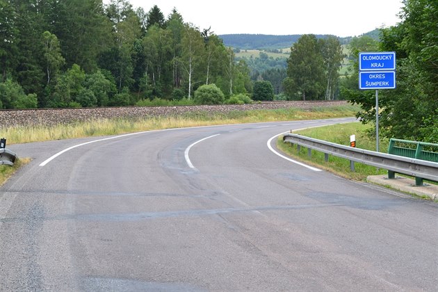 Oprava silnice II/312 skončila před hranicemi Pardubického kraje. V sousedním Olomouckém kraji není pokračování cesty také ideální, ale alespoň má silnice vodorovné značení.