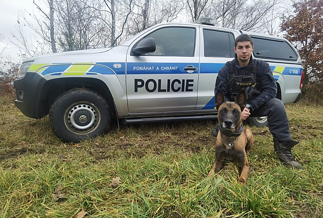 Viníka nehody vypátral policejní psovod s parťákem Attackem nedaleko Kraskova na Chrudimsku. (12. prosince 2024)