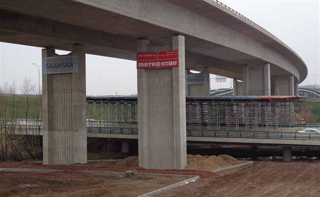 Na 1100 metrů dlouhé stavbě zbývají dokončit například poslední metry montáže zábradlí a svodidel. Ve středu položí silničáři zbývající vrstvu nového asfaltového koberce na jedné z ramp.