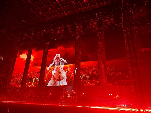 Řadu skladeb doprovodily vizuální efekty včetně ohnivé show. (29. října 2024)